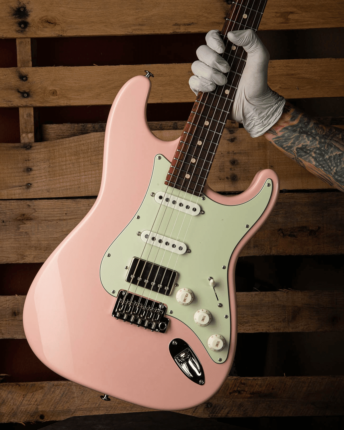 ストラトらしい煌びやかさと、よりコンプレッション感のある太さ。その両方を1本で使い分けられる点は、ジャンル横断的な彼のプレイスタイルと非常に相性が良い仕様です。