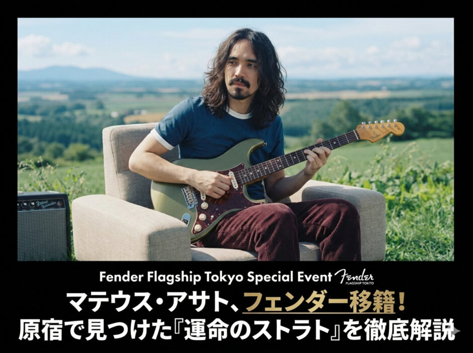 そして今、多くのファンが気になっているのは、アルバムやMVでも使用されている深いグリーンのストラトキャスターの正体。実はそれは、原宿で偶然出会ったマスタービルダー製の特別な1本でした。本記事では、マテウス・アサトがフェンダー移籍を決断するに至った真相と、話題の緑のストラトに隠された運命のストーリーを詳しく解説していきます。